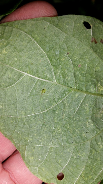 @Hal , Sorry it took me so long to post these. They were taken a few days ago, at night. Backs of the leaves... I expected I would find mites or aphids. Found 4 different bugs, but only one of each, lol. That first one looks like a tiny beetle larva to me, one caterpillar of course, and I'm unsure of the last 2.