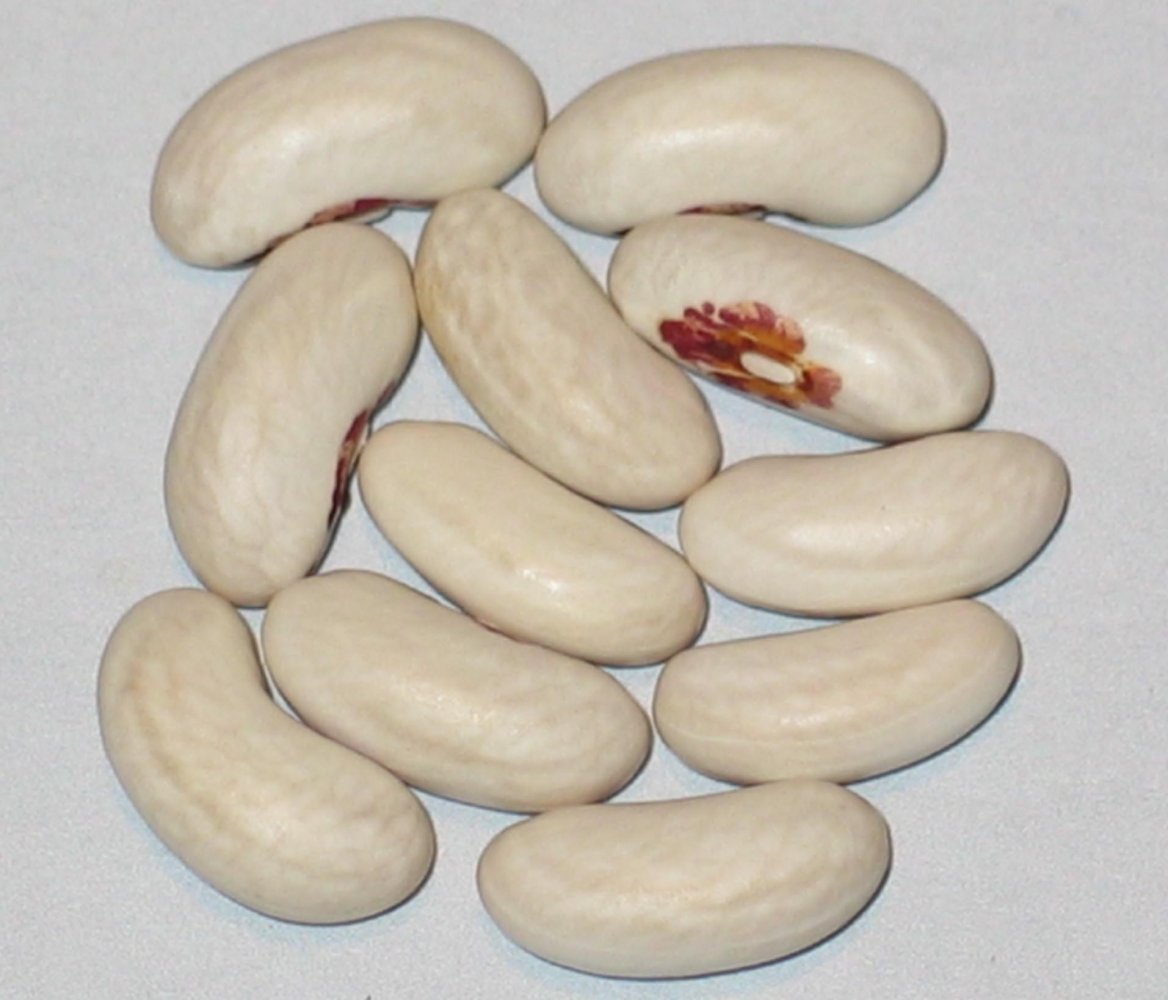 This bean is called "Duane Baptiste". Like a plump White Kidney. A bush variety grows without runners. Said to have a hint of potato flavor. Old six nations bean that is productive in cool summers as well.