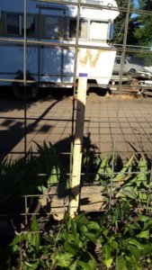 Then the Raspberry Ripple that was growing great as a bush until a cutworm chopped it off. It has sent out a small bud and is growing OK, I should get something off of this one. Last year's Raspberry Ripple was a pole so this one is still segregating too.