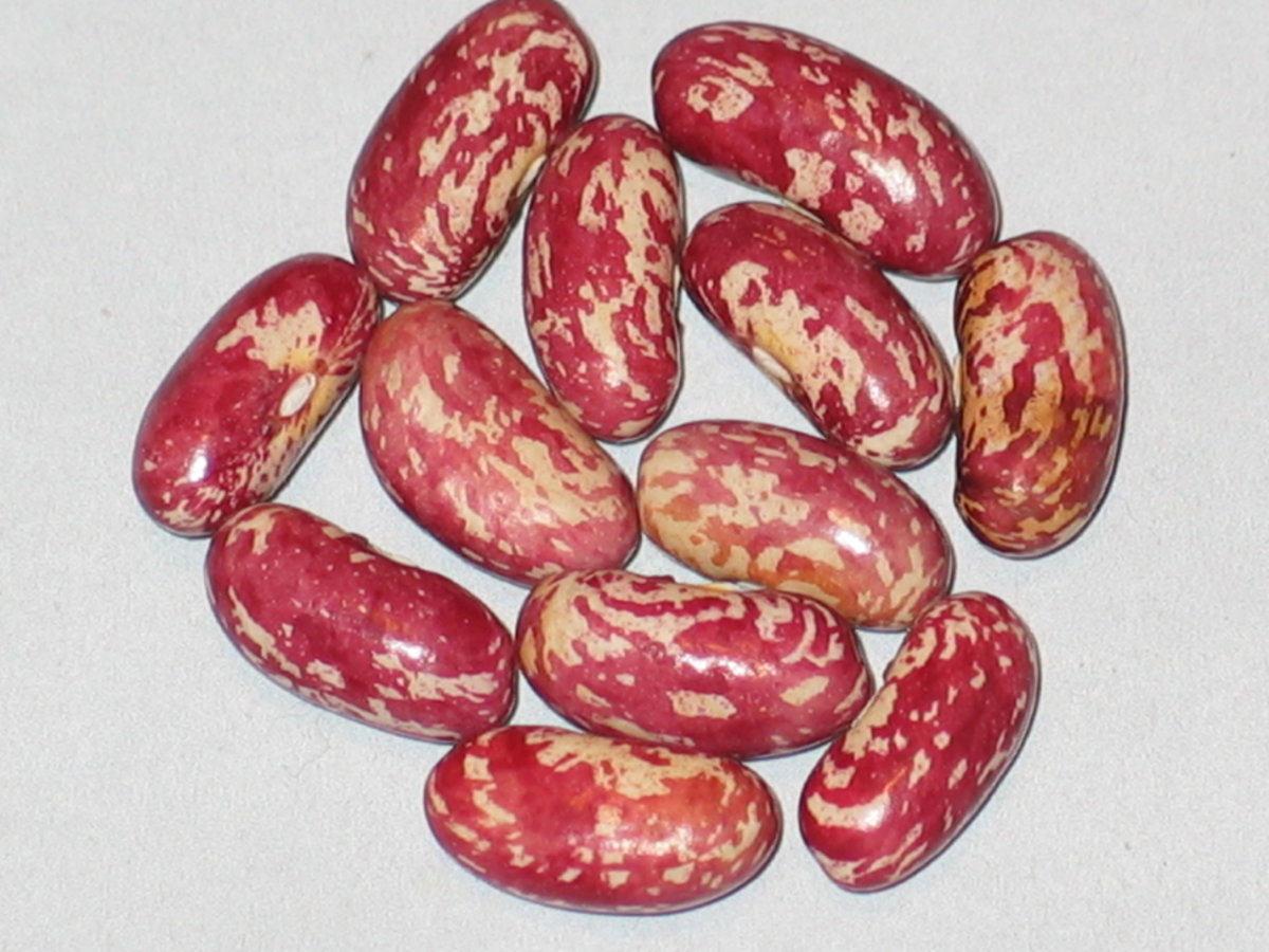 "Pink Thrush" True bush growth. This is a working name for this bean. It is a segregation of an outcross found in "White Robin" in 2012. It's base color still pretty much retains the red in the eye patch of "White Robin"