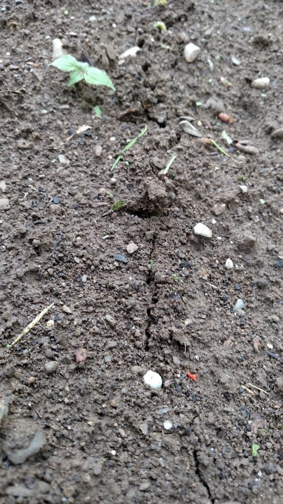 You can see a line cracking in the ground where a row of beans is coming up