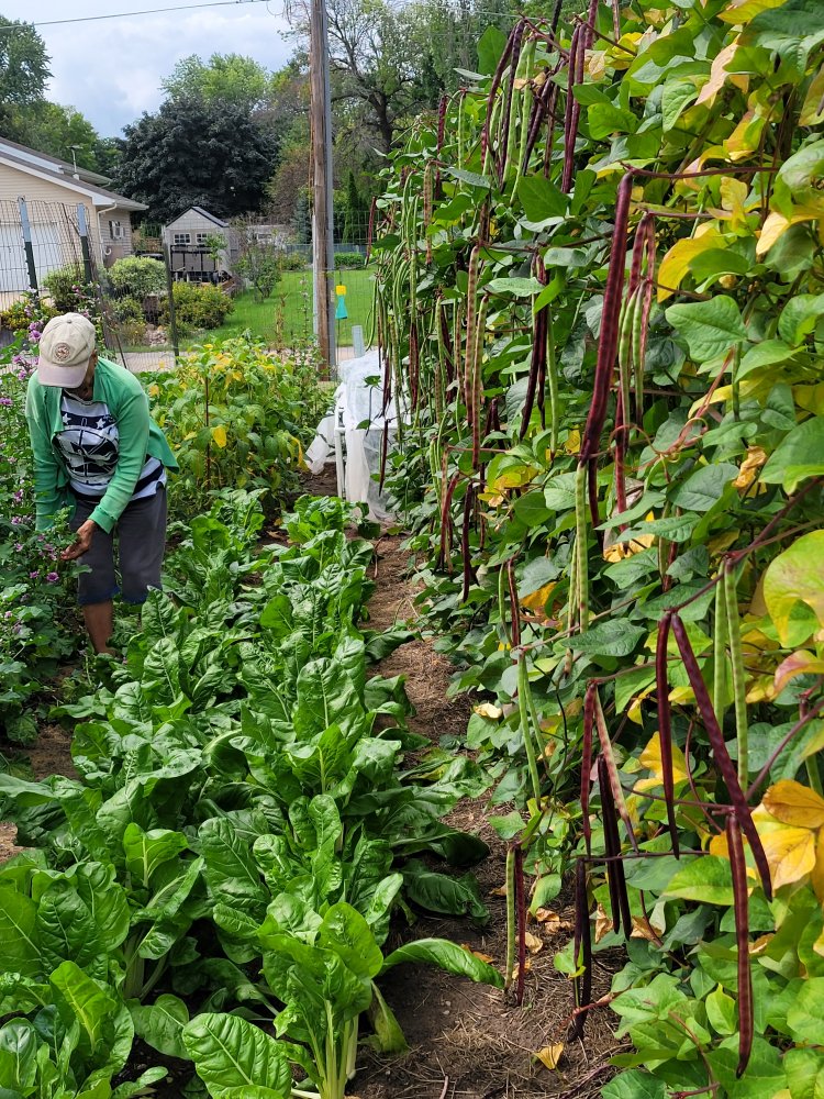 What a gorgeous photo. Those beans tho! Wow! If those are Swiss chard plants in the row, what fine looking unblemished leaves they have 😍