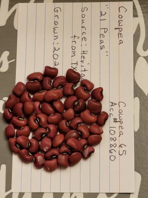 This is the (as yet unnamed) black cowpea sent to me by @Bluejay77 . We thought it might be a purple-podded yardlong bean; but the immature pods are green, 10-11" long, and IMO poor quality as snaps. The pods turn purple as they ripen. The dry seed yield from 20' of row was phenomenal - 5 pounds, as heavy a yield as I would expect from pole beans! This is a great cowpea, and I hope to share it widely - but it needs a name. It could be "Black Crowder" , based upon the description... any word back from your source, @Bluejay77 ?