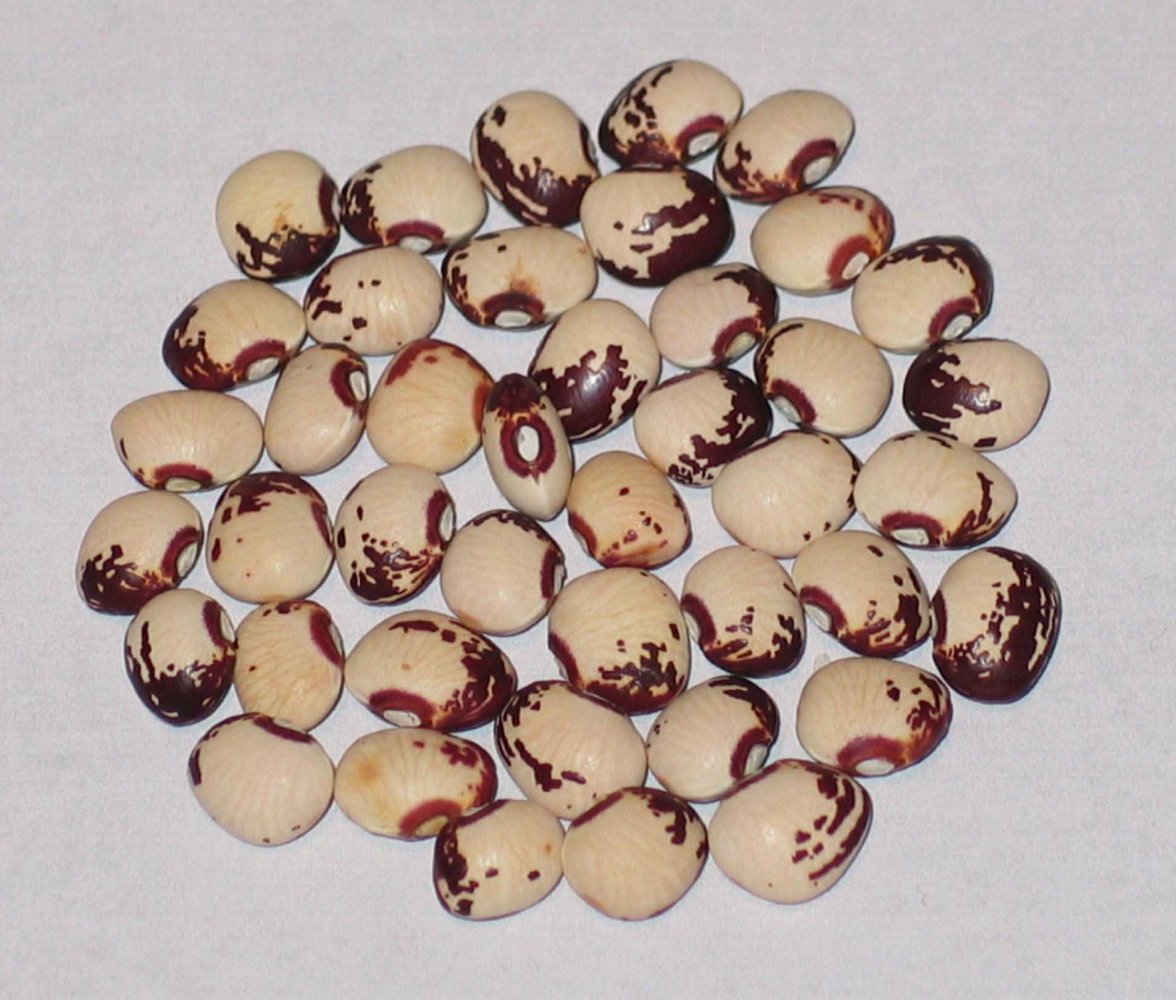 Productive red horticultural variety grows without runners. Large plump oval dark red seed mottled with light tan. Dries pods a little later than most early dry bean types. My first encounter with this bean was from John Withee's Wanigan Associates bean network in the late 1970's. John listed his source for the bean in his bean collection notes as June Bester of Butler, Pennsylvania.