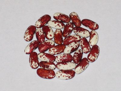 Very pretty bean I originally obtained from a Seed Savers Exchange member in California in 2011. The bean is from Kenya. For a bush bean it seems to grow fairly large plants. An 8 foot section of row produced over 1.5 poounds of beans this summer.
