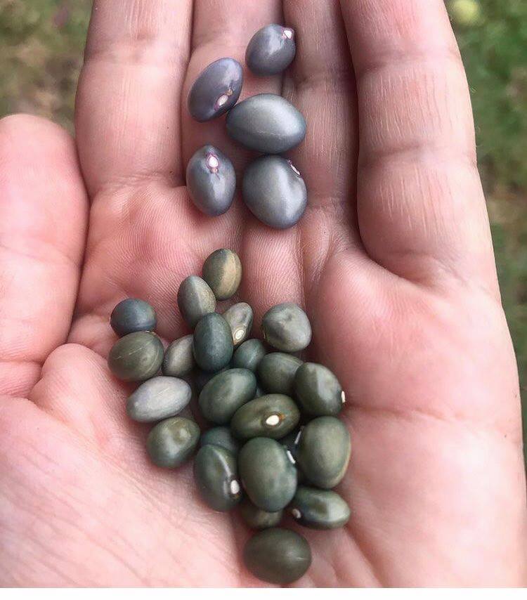 There's a funny thing about this one.. I didn't know the coat color changes color with temperature! The first beans i harvested (which grew in the summer heat) is not blue at all, not even close.. I did a second planting immediately just to see the difference. Those beans are not quite ready yet but i did a sneak peek and looks promising