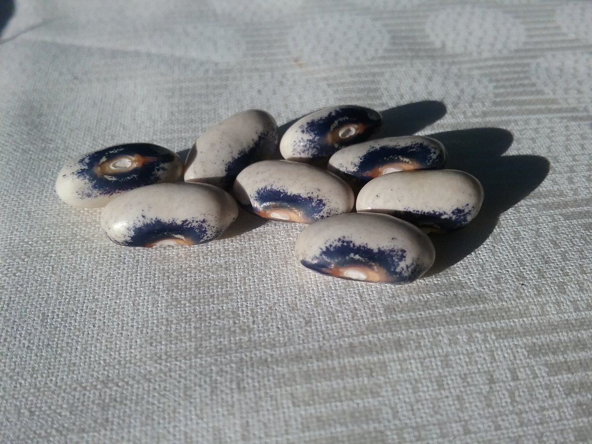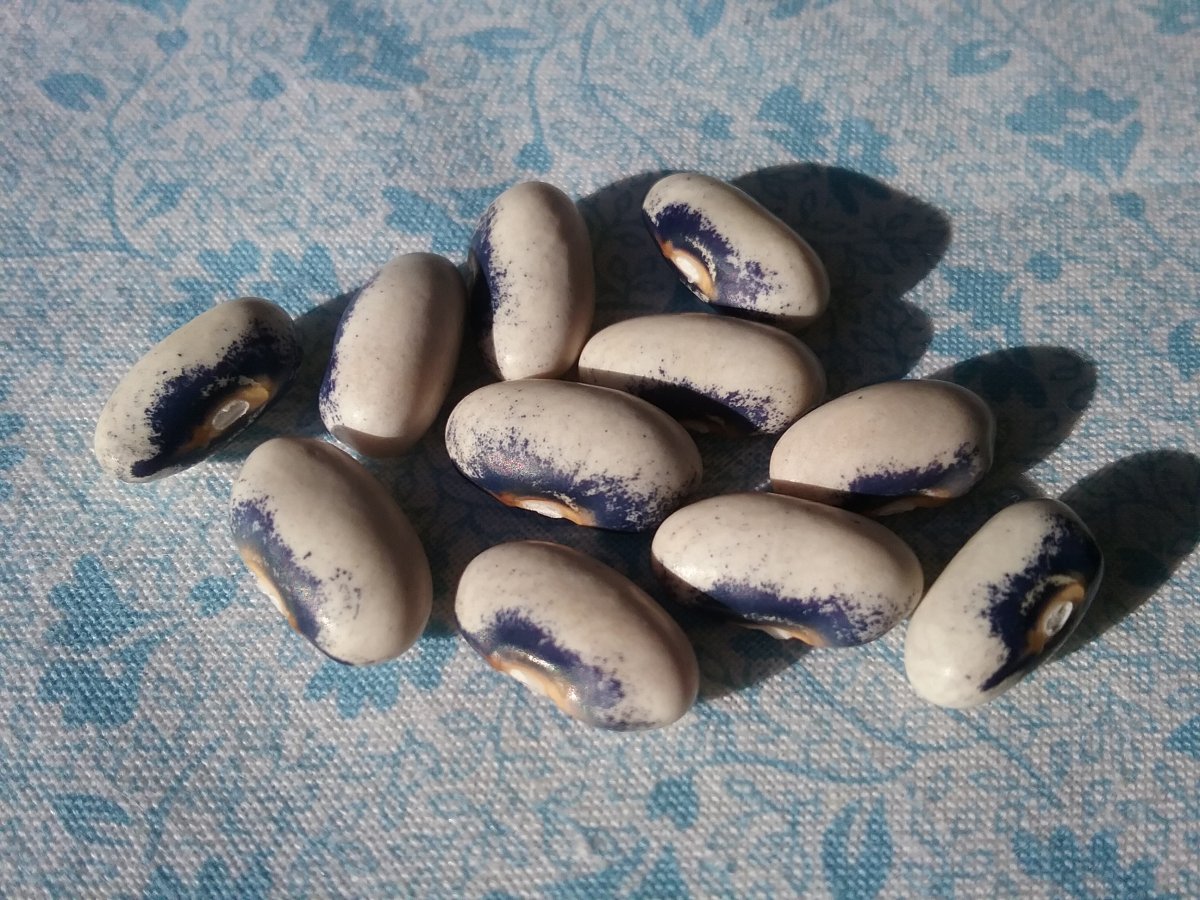 There is a cross within the 3 pole plants, because I see some pods are purple, some green. I think the dried pods I found were the purple ones. So, this may not be true to type? The seed shape isn't exactly, exactly like the BCW photo, the colours seem about right though? Let me know what you think @Bluejay77. But I did find the seeds purdy.