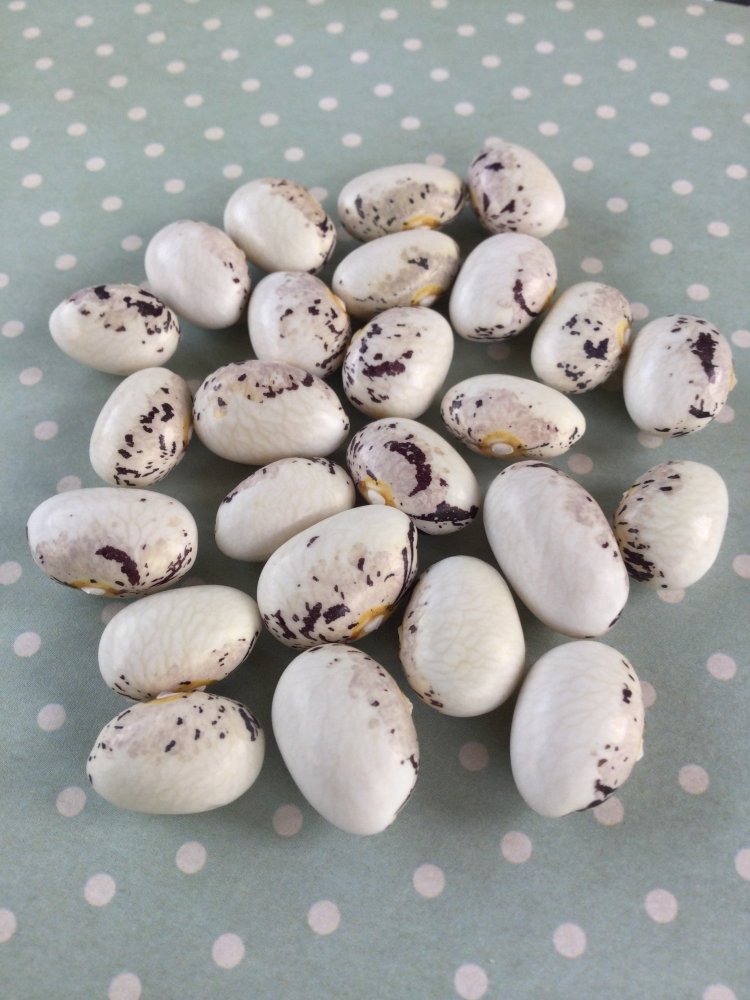 Altmarker (2 dots over the A...) Very nice seed variety, and it's a snap bean too even though it's so nice looking.