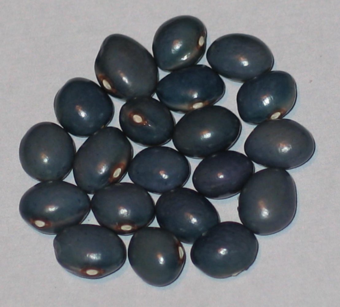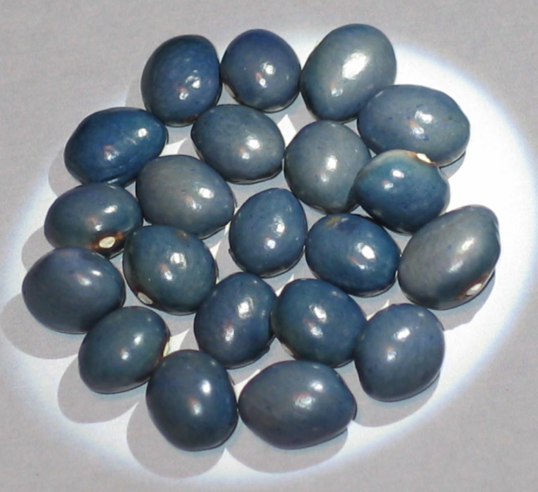 WOW! Those are incredible! Blue Pacific is a wonderful name too. I hope they grow true again!Here is something I thought would be fun to share with you. Recently I got a bean from one of our Network growers on Vancouver Island BC. This grower found this rounded very blue bean in Blue And White Of Bernardo. This bean is very dry at this point and it hasn't turned a black blue like Midnight Blue or Sacre Bleu. This bean is really a nice shade of blue. The grower of this bean has named it Blue Pacific. I'm very much looking forward to growing it next summer. I'm hoping it won't start producing a lot of tan beans like some blue beans do. I've taken about 5 photos of this bean and I'll post 4 of the best ones. Am I excited about this bean, Yes ! I've been waiting for something like this bean to come along one day. All the same seed with different amounts of light.