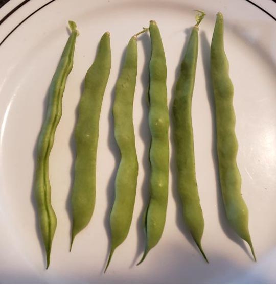 I picked some Logan Giant snap pods today about 9.5 ounces with 6 inch pods (15cm). Had them with my mid-day meal. They cooked up stringless and tender and some of the seeds that were starting to get a little larger cooked tender too. I mean delicous ! Probably could have picked these 3 or 4 days ago but yumy good, can't complain. A West Virginia heirloom of many years. I planted them last year and wound up cutting the vines about 10 days before our frost. I would not say they are an early bean but I can direct seed them here and get dry seed. Transplanting them would definitely speed things up. They will go on my top all time farvorites along with Mr. Tung which I tried this year also. Yum ! Both varieties are quite productive. These pods were so clean I didn't even have to wash them. I've also tried Tennesee Wonder this summer another good one and Theresa Marchese about 5 inch somewhat flattened pods not bad either.