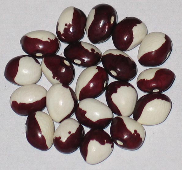 Frost - Pole Dry. Left Photo. A pre 1796 bean I acquired from a grower in Bozeman, Montana in 2018. I wonder if the bean has been used as a snap bean. The idea of it's name is that it produces until frost in the autumn hence it's name. Previous to this year I sent this bean out to growers seven times and only one return came back since 2020. This year in 2024 two growers grew the bean and both retuned lots of beautiful seed. Growers were from Mason, Michigan and De Soto, Wisconsin.