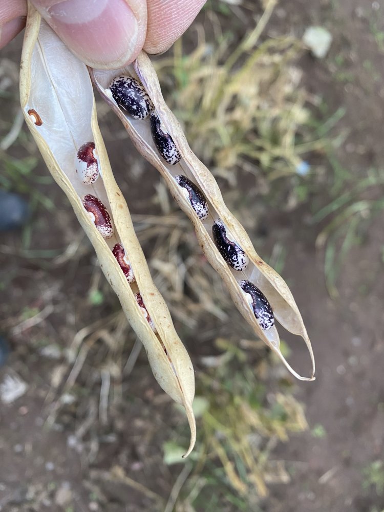 Another thing that caught my eye is he planted Vaquero, a bean which I received as a network bean in 2021. Interestingly, the photo of the dry Vaquero beans on his website look exactly like the ones I harvested from my Vaquero plants - which was quite different from the original form we both had. The seeds originally were quite small and very marked with bovine themed black spots. Yet both his soil and my soil (and growing circumstances too I guess) altered the bean to be bigger, rounder and much less black marks. He wrote on an instagram post that, that specific color marks that Zuni Shalako and Vaquero have are a result of high heat at the time of bean formation. So, my guess is because he and I probably have similar growing conditions we both wound up with identical beans.