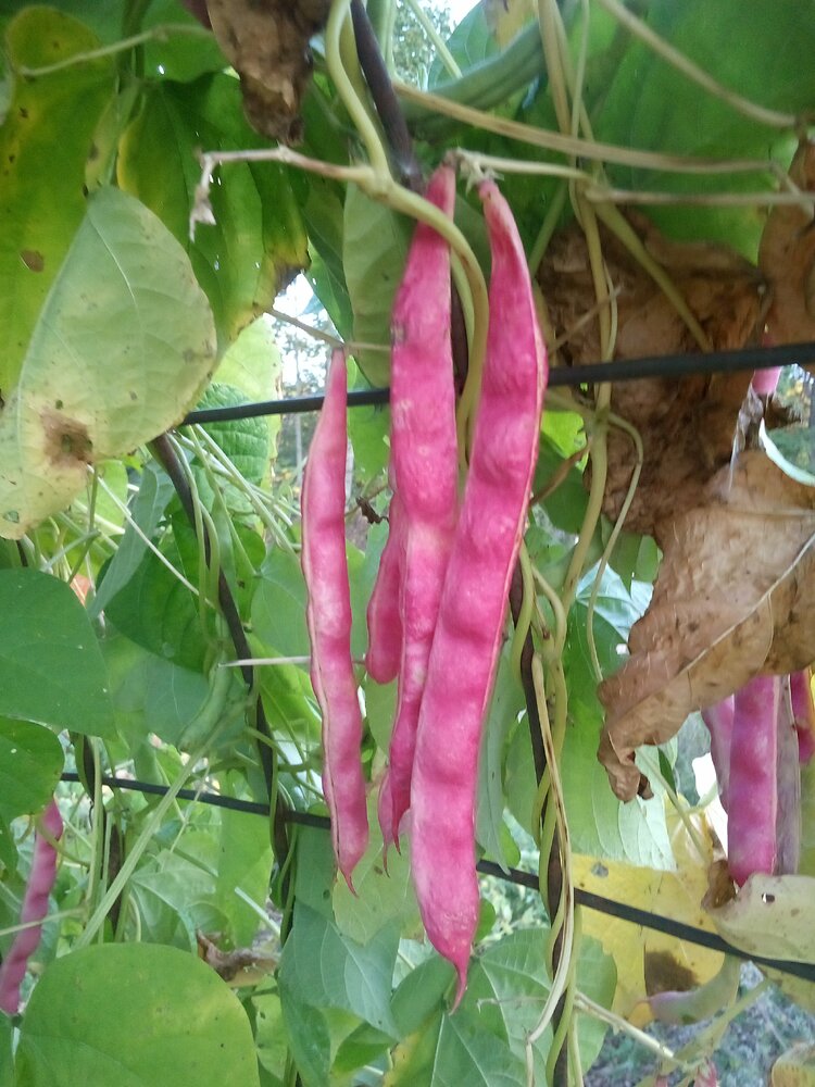 Ma Williams is a standout variety due to those vibrant pink 6-inch pods. Garden is approximately 30' from the driveway and the UPS guy was astonished to discover he was seeing bean pods and not a vining flower like he first assumed. Majority of these pods have dried and been harvested. Forgive the ratty-looking foliage as it's been dry and the plants are beginning to shed leaves.