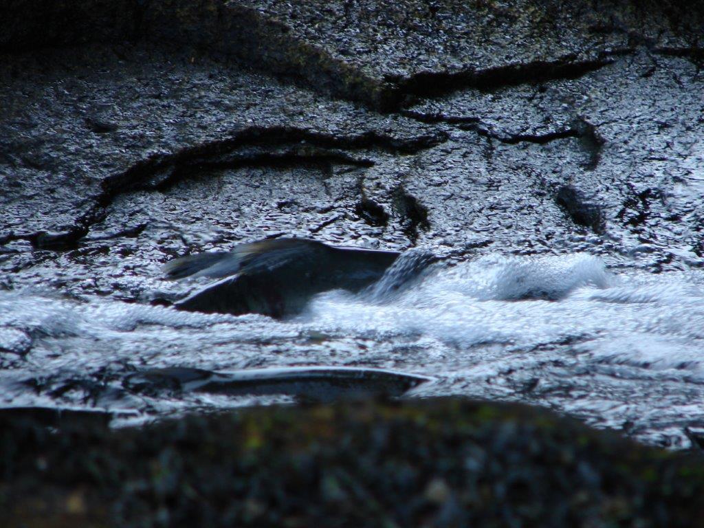 the last one is intently looking over a group of salmon headed up the little stream. My last picture is of those salmon, we took the dingy to shore and rowed right up into them. This picture was taken at arms length to the fish. After the Eagle was done dining on his!