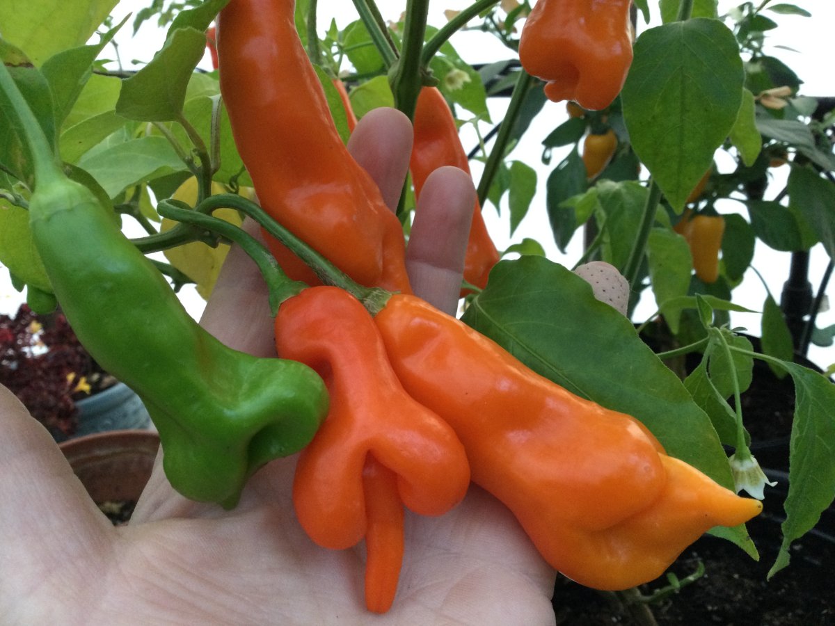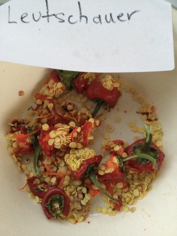 The Aji Exoticas are finally ripening, yay! This one and Aji Fantasy White are 2 I may regrow next year I liked them so much. Sugar Rush Stripey too. I have a whole big bunch of peppers to de-seed right now and need to find some oompah to get that job started. And I need to find that oompah soon because pepper seeds don't wait.
