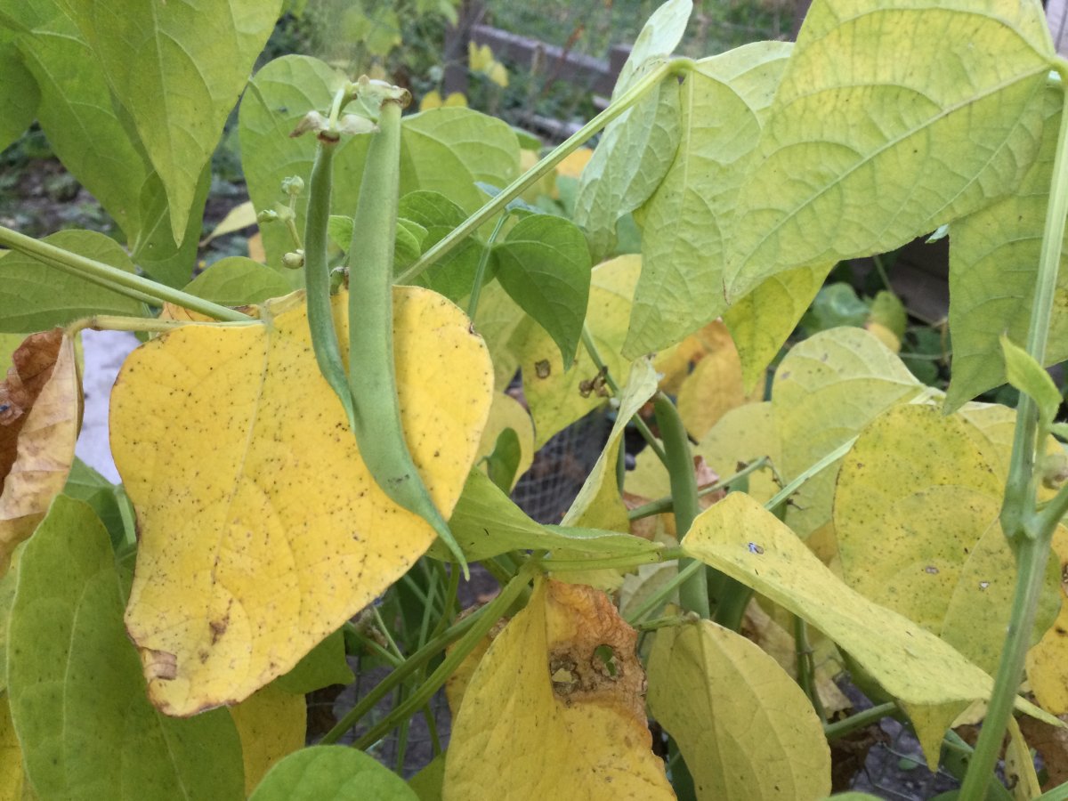 I find this somewhat puzzling and curious. This Bolita bean plants were put in rather late and clearly most of the pods won't produce mature seed, yet something is signalling to the plant to shut down. I thought mature seeds was the signal, but this proves that not to be the case. The yellowing is being triggered perhaps by the shrinking daylight hours. At the same time, I have a pole bean that was not planted late but is still green as anything and not yellowing in the least. I wonder if different varieties can have different triggers to shut down and start yellowing.