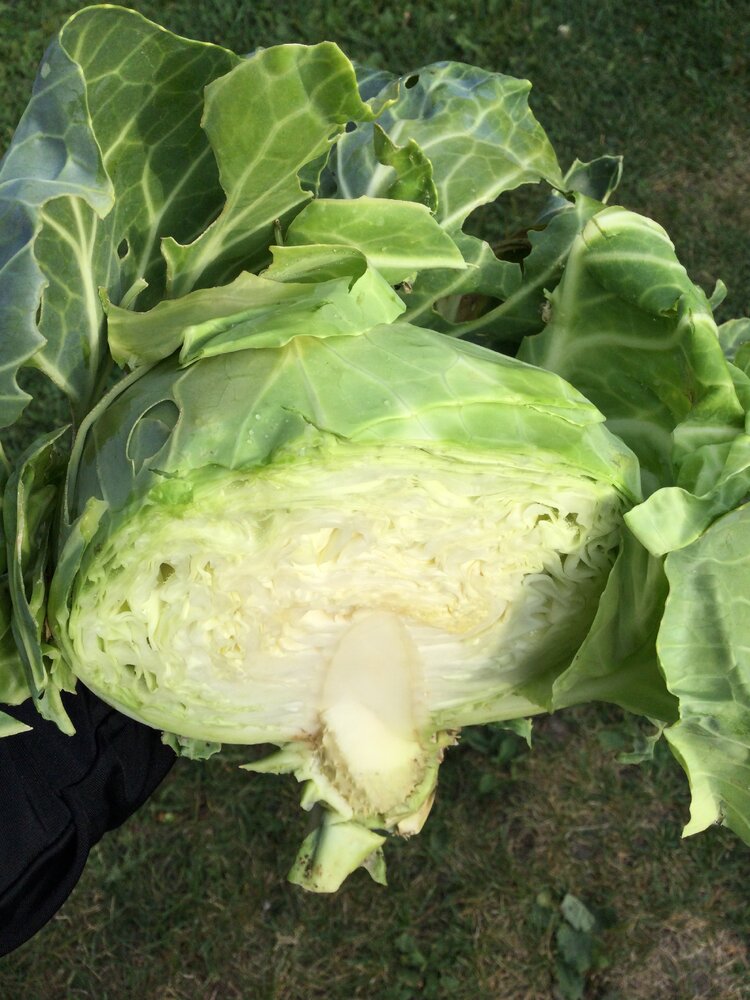 The experienced cabbage growers will probably laugh (rightfully so!), but hey, it's my first ever decently grown cabbage! I didn't think the green ones would survive the hideous bugs, I protected only the purple heads. The outer leaves were absolutely butchered by crawlies, but inside was unblemished. I don't know how much nutrition would be in these, not much chlorophyll, but it tasted good!