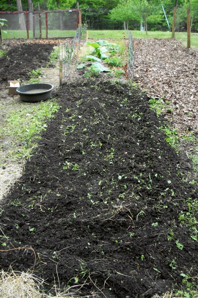 Got the beds for everything tilled for the last time and that soil is so very black, soft and lovely that I almost cry when I look at it!!! You see, I've never had a garden with loamy, black soil before and I can't really get over it just now....it's the deepest topsoil layer we've ever had also.
