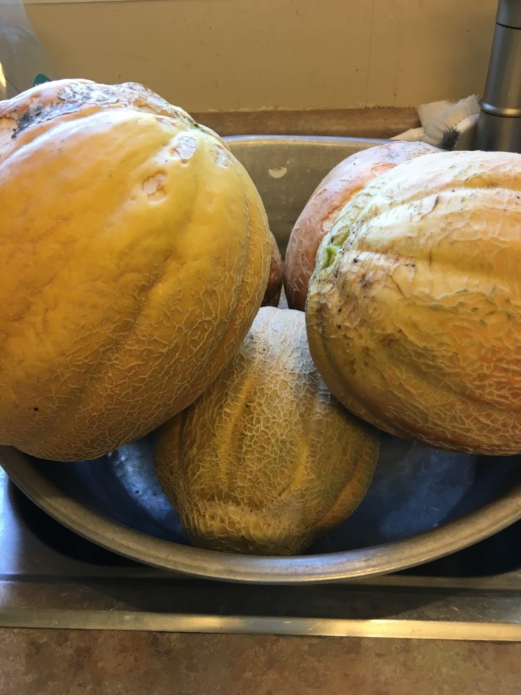 I picked several Amish Melons today. I sliced one up and put in the dehydrator. I put 3 on the counter to finish ripening.