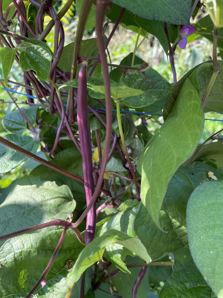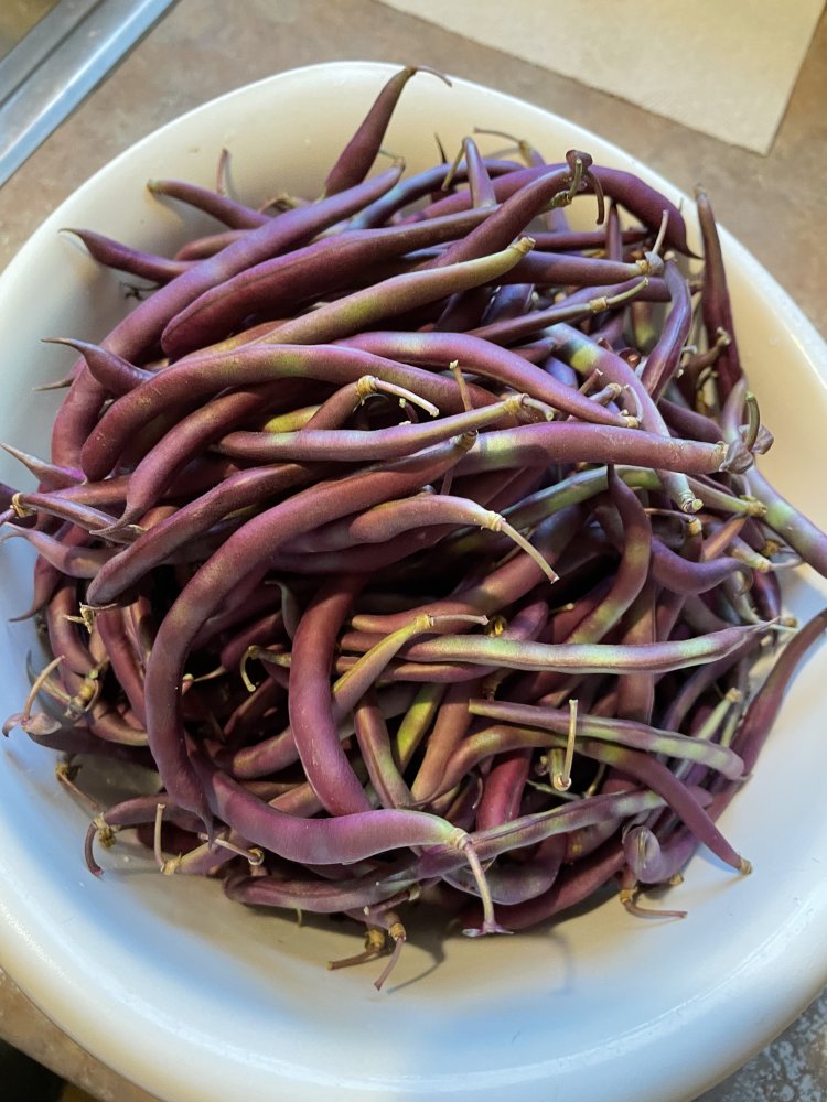 Grandma Robert’s Purple Pole Beans! I picked a big bowl full on July 7 and canned 6 pints from the first picking! They are beautiful growing on the vines AND easy to find!