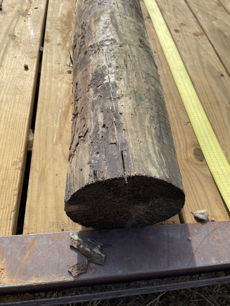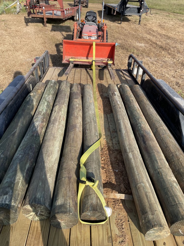 I took the day off yesterday, exhausted. Back at it today, to get the last 9 posts off the flatbed trailer. Can’t lift these from the side because of the rails. So I got a 20’ strap and pulled them off the back.