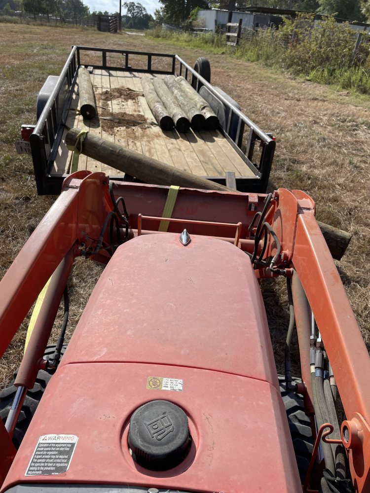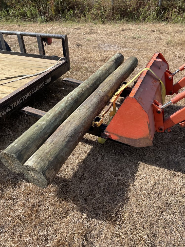 They turned sideways, so I eased the forks under one end, lifted and backed up until the other end cleared the trailer. Then I tilted the forks and it rolled to the bucket. Sometimes I had to get off the tractor (after setting the brake and putting it in neutral) and “help” the post get on the forks. LOL
