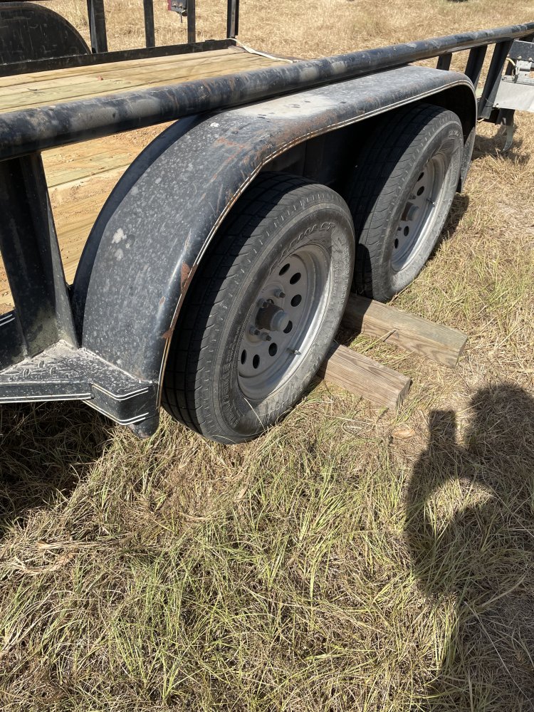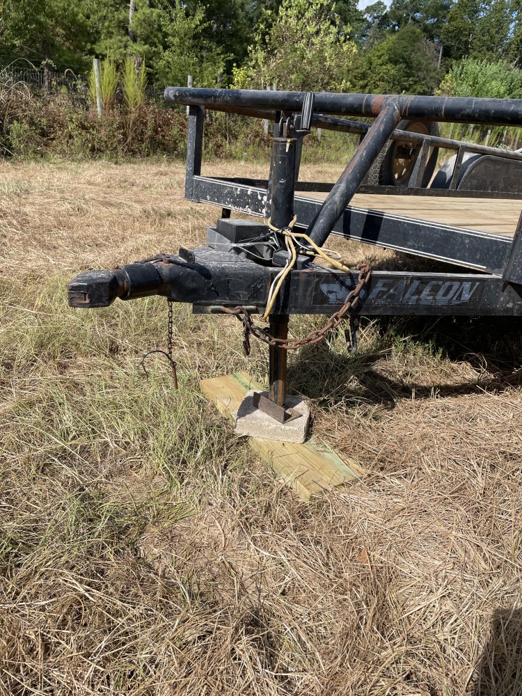 This post snagged the angle iron at the back edge of the trailer and dragged the trailer backwards. The tongue Jack came off the block. I had the wheels chocked, but they skidded backwards too.