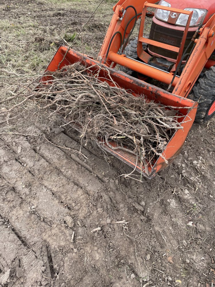I hate green briars. The fence line was thick with green briars. So I conceived the brilliant idea of digging up and pulling up as many as I can. That way maybe I won’t have so many of them to come back. I got 7 bucket loads, I’m almost halfway done. I’ve worked all day on this. I pulled, I dug, I machete chopped and I pulled some more. I pulled lots of long roots, they are jointed and every joint can send up a new vine. I got lots of the bulbs they make underground. Tomorrow I’m gonna die. But for every one I pulled up, that’s one that won’t come back.