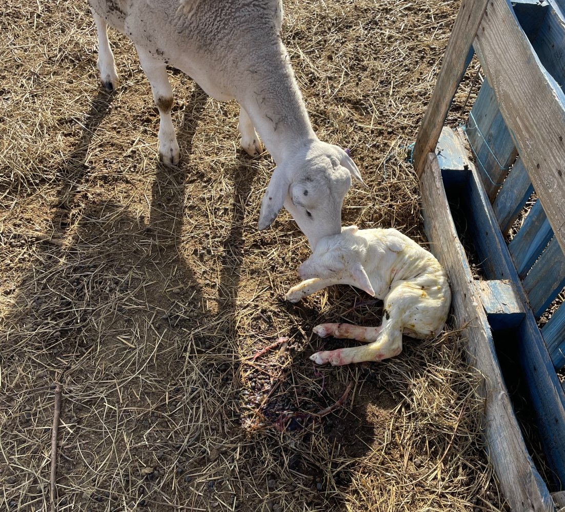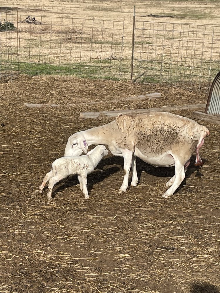 Two ewe lambs. Congrats. And the one with freckles is ADORABLE. <3Cleo was in labor this afternoon. I put the Ewe Crew back in the lot, had to leave and didn’t want to leave ewes out in the field. The black vultures are around and I didn’t want to risk it. Plus we have eagles and they can carry off a new lamb. In their pen, the dogs are around them, not in the pen, but close enough to keep vultures and eagles away.