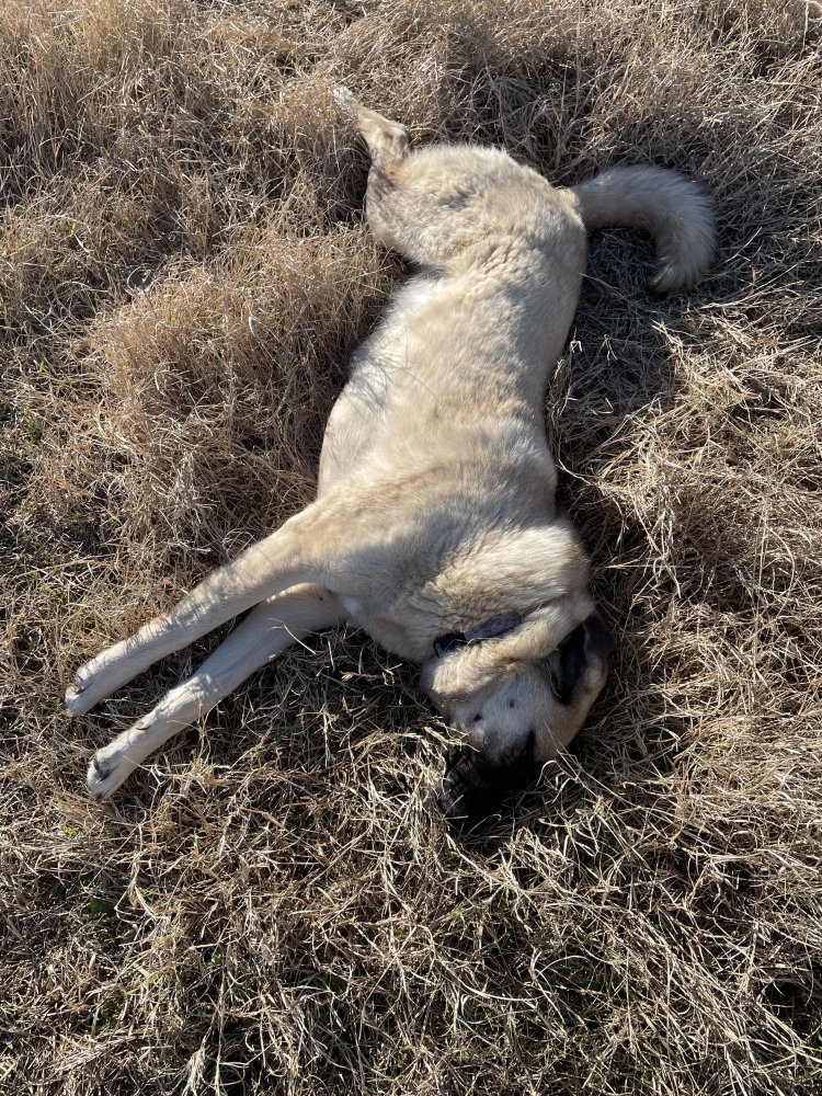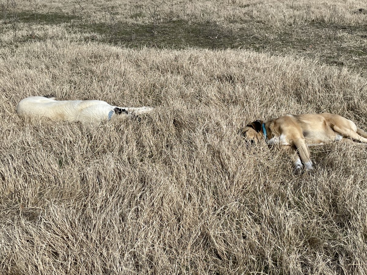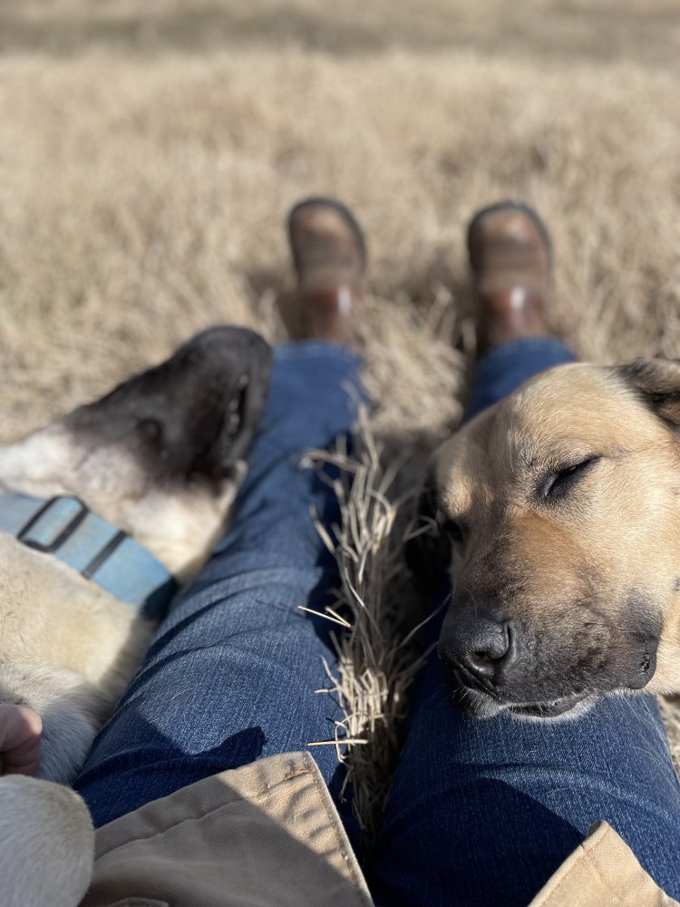 I sat in the grass and both dogs got ear rubs and tummy rubs.