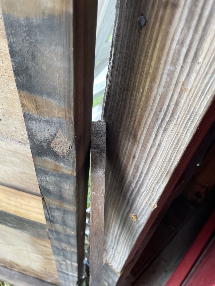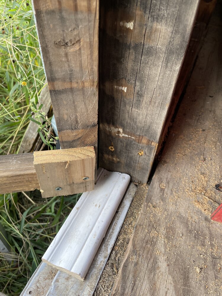 So I made the door frame last week. I ripped 2x4’s and made the frame. The 2x4’s that the previous door was hung on were rotted. The old door was rotted. The screws just came loose.