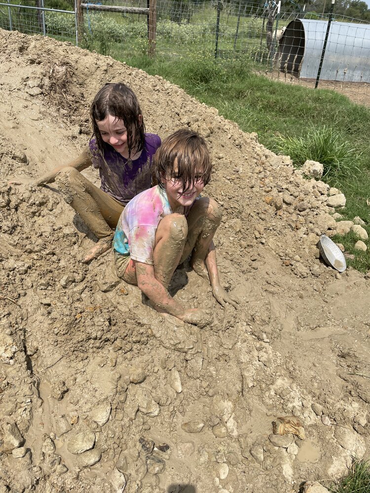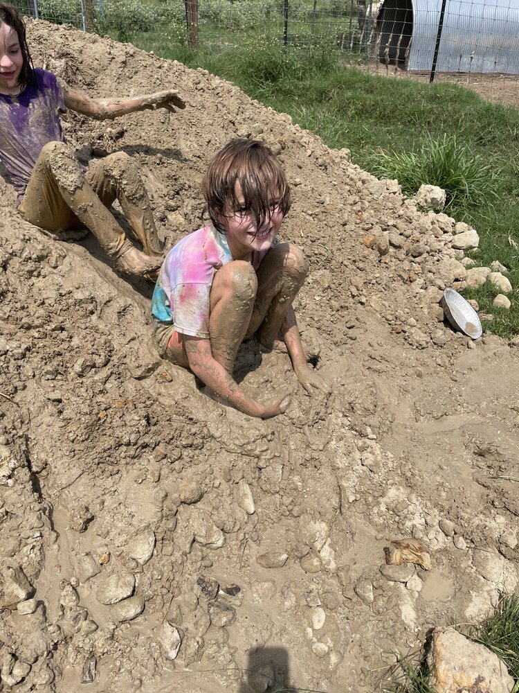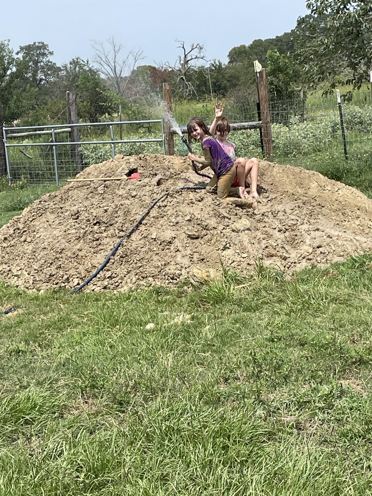 You and those little girls have such fun together!Yesterday we added water to the dirt pile.