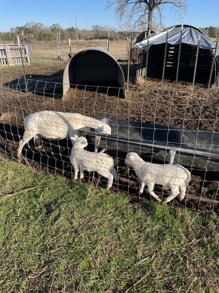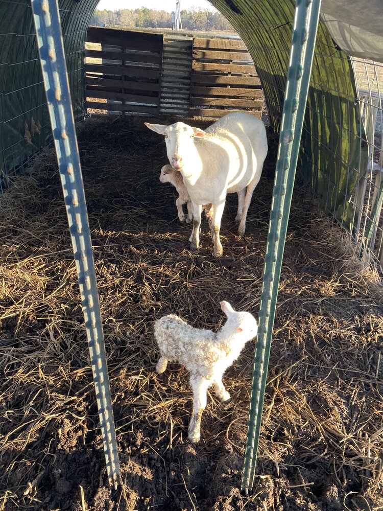 2 sets of twins last night. Easter, born Easter morning, her mom was born on New Year’s Eve, appropriately named Eve, from Miranda, has likewise chosen New Year’s Eve to lamb. Looks like boy/girl. Boy will be castrated and added to freezer pack to grow out. Girl will stay.