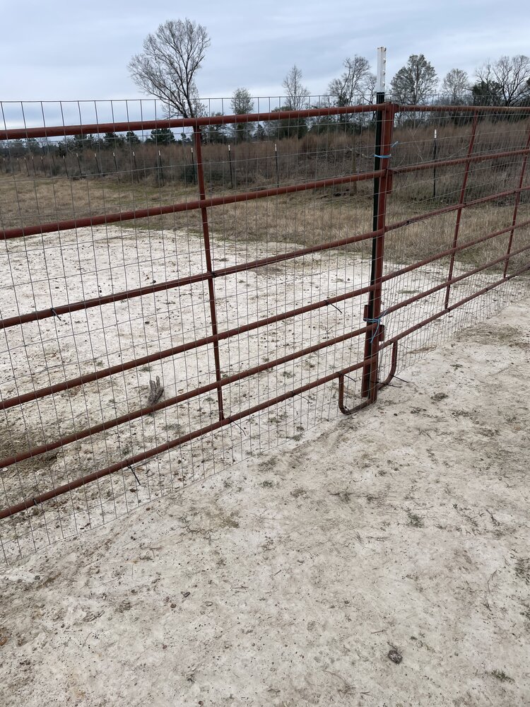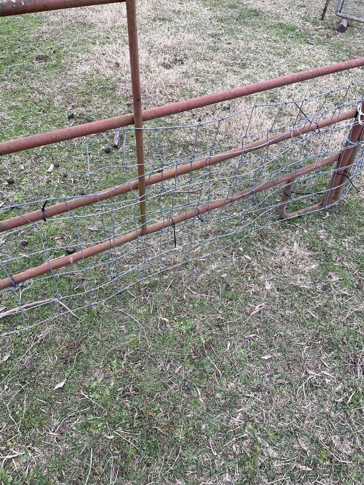 I have some Red River cattle corral panels. They were at the back of the back yard so I dragged them up to the front. @Ridgetop and I were talking last night, WHEN did this stuff get so heavy? I opened the gate to the front field and dragged them inside. I had 9 that weren’t being used elsewhere.