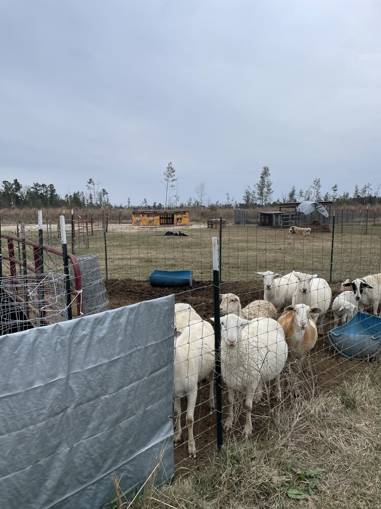 It took me all day to get this put up. I’ll have to cover the panels with some kind of wire so the lambs can’t walk under it. I have some welded wire, it may be enough. I pounded T posts, dragged panels around, zig-zagged them across the field and tied the whole thing together with hay string.