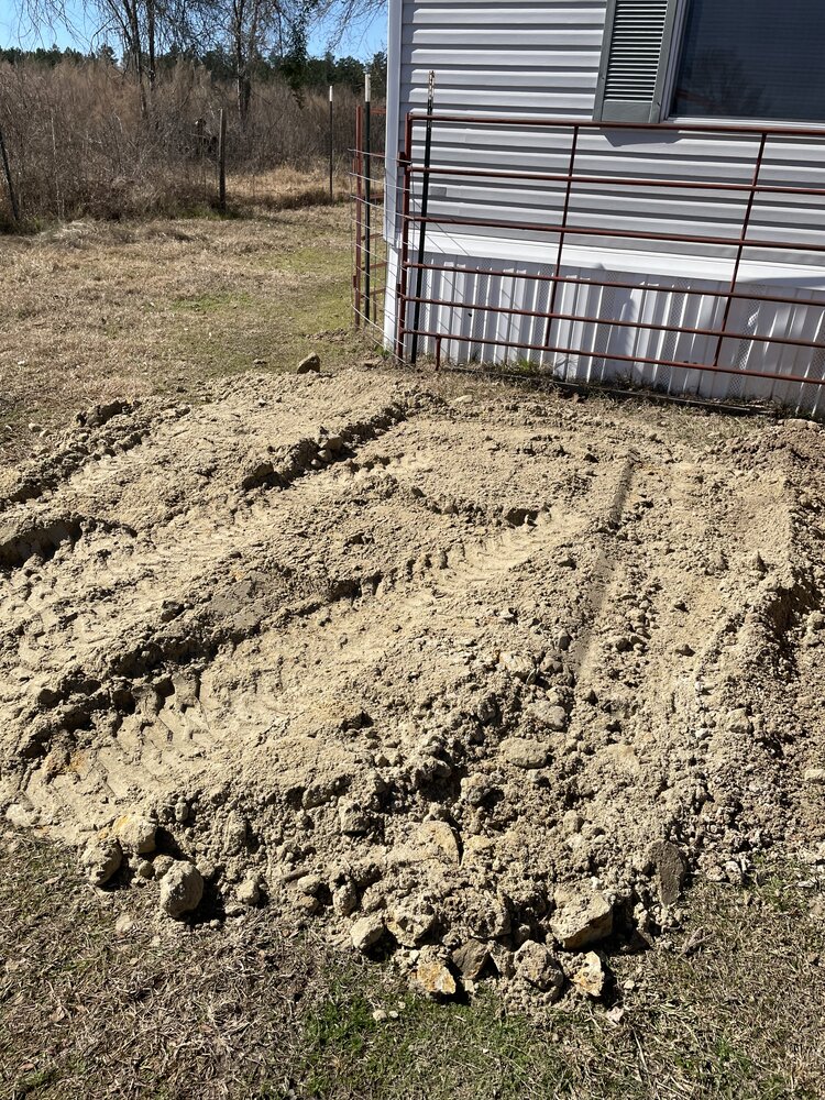I got my dirt pile Friday. I moved dirt Saturday and got the dirt pad for the chicken hoop coop to be built on. It may not look like much, but that’s between 30 and 40 trips from dirt pile to dirt pad on my little 23HP Kubota tractor. Plus raking it smooth periodically.