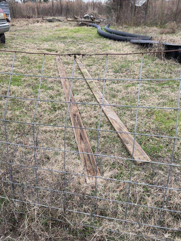 There were 2 boards laying on the ground, so I tossed them over the fence.