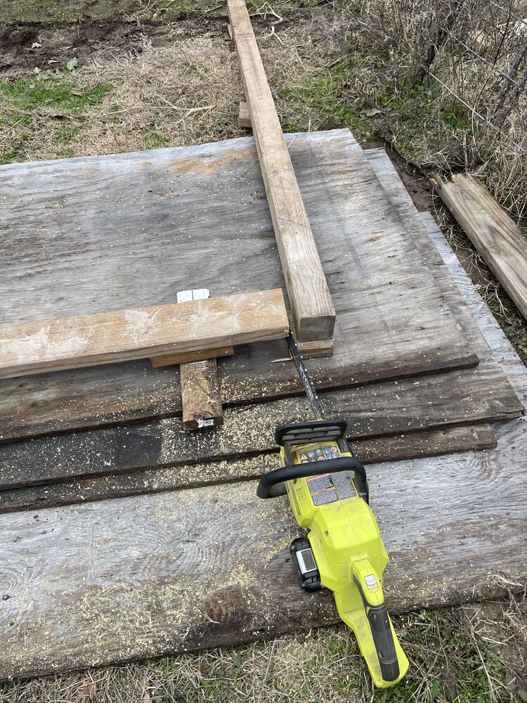 I used my chainsaw to cut the bottom and middle 2x6 off the 4x4’s.