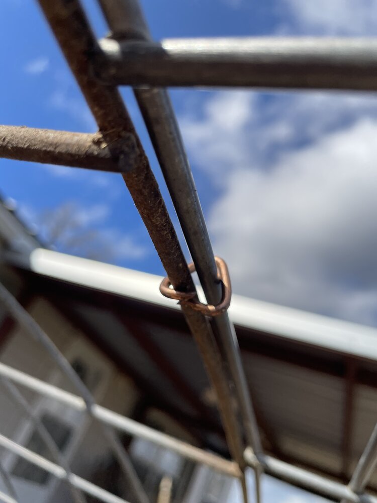I put a hog panel in place and stapled one end. It was uneven to the cow panel.