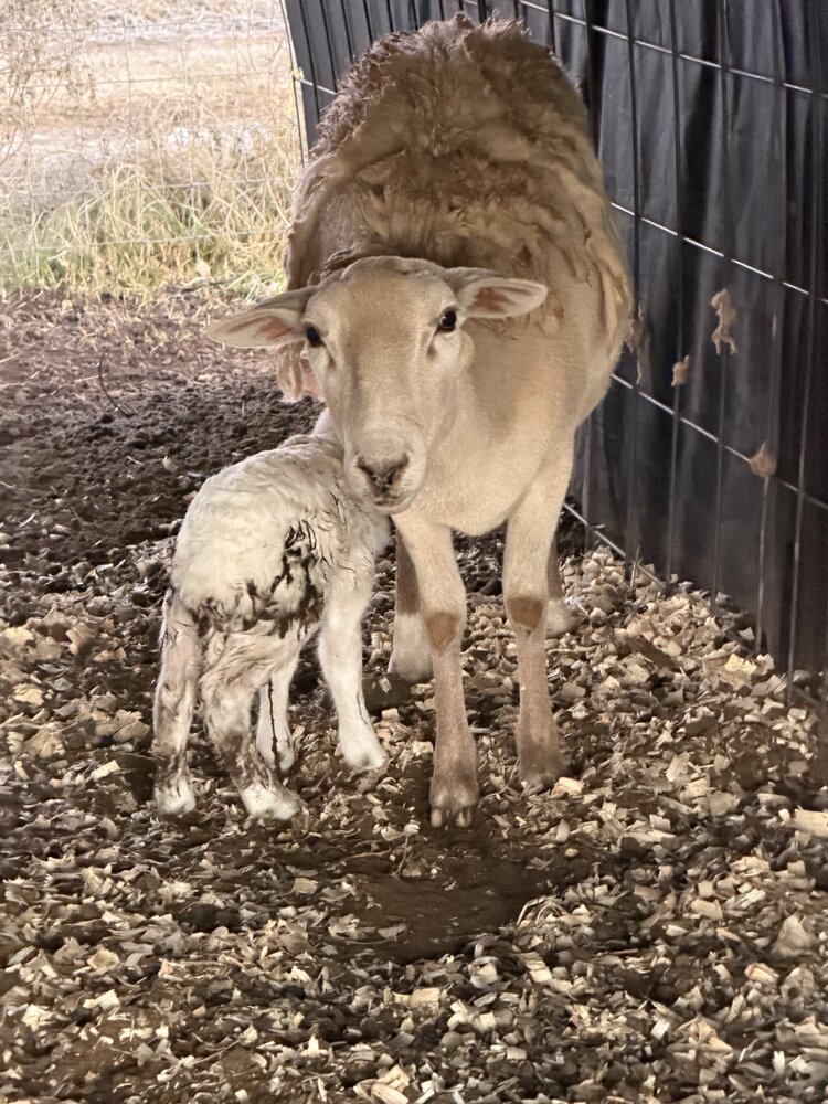 Perhaps she found the eggnogBusy morning! I had to leave at 8:00 and pickup my sister in law to get her to physical therapy by 9:00. I was doing chores and there was Mango with a lamb!