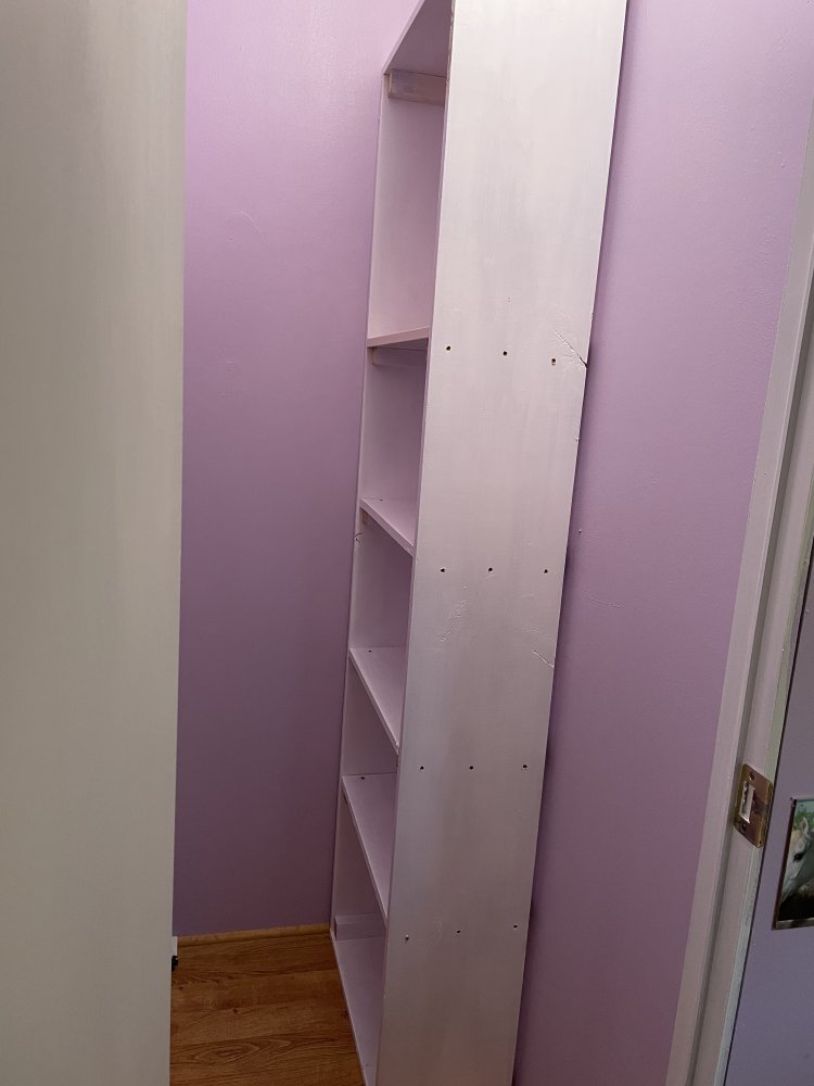 Since it rained all yesterday morning, I put together all the pieces for the shelf tower in the girls closet. It’s only 2’ wide, not a lot of room in the closet, but a little of something beats a whole lot of nothing.