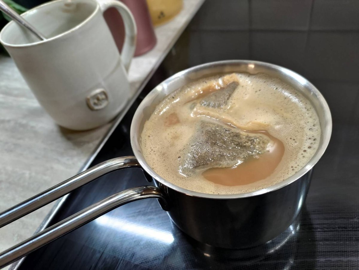 Did an @flowerbug , put about half a T of peanut butter in it. Choke. Needed to drink more than the cup of oolong! Started on the herb tea, way too early ...