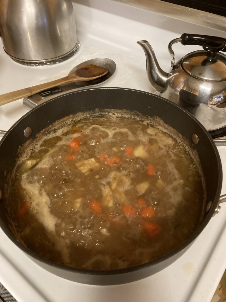 I was thinking how retired life makes some things apparent that might not be in the workaday life of younger people. Despite having extra time, I still function somewhat by the clock. My first order of business upon rising is to turn the kettle on but there may be a little extra effort, at times, to make broth for later meals. It takes very little time to do that with leftover beef or chicken bones, saved from an earlier meal. The veggies that go into it need so little prep because of the long cooking time and the fact that the bones and veggies will be discarded.