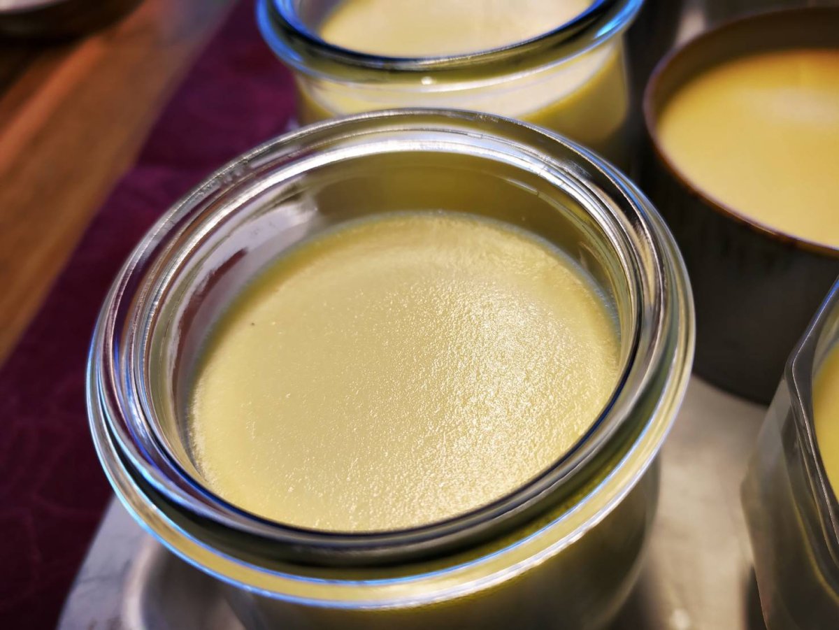 The name should be "Crème Caramel," the recipe I used has eggs, milk, sugar, and heavy cream. It's one of our family's favorite desserts. The ingredients are simple, but the taste is creamy and charming.