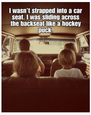 We were sliding around in the back of our station wagon. We had a game we played called Whoa Nelly. When the car turned a corner, everyone slid around and then had to hold that position until the next turn made us slide to new positions. Of course, you had to shout out Whooooah Nelly! during the turns. Fun times!