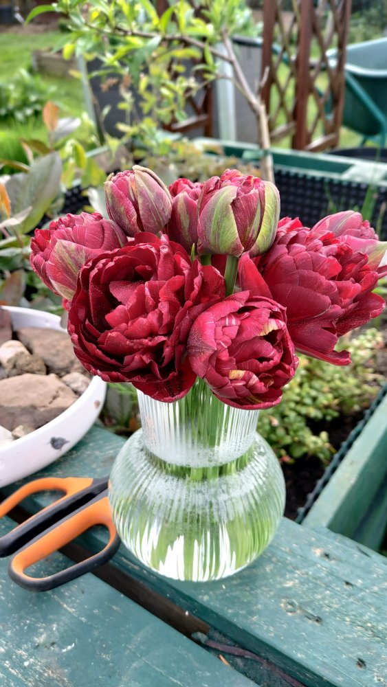 The peonies look good in the garden, however, we would have rain later this week. Besides, this is a very young peony plant, cutting the flowers earlier can avoid unnecessary energy waste.