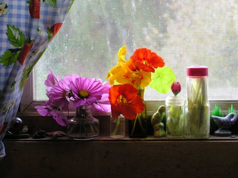 other flowers for cutting we like beside spring tulips and daffodils are the zinnias, cosmos and irises. not all of these last very long, but are bright and cheerful.
