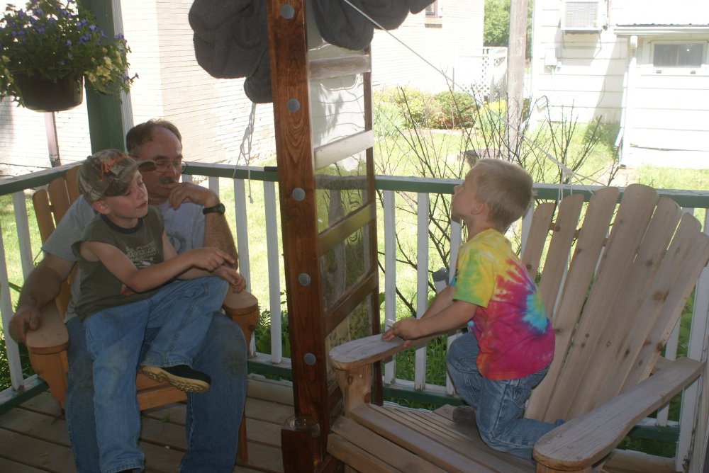DH did it on his own! Lots of reading. Calls to friends of friends willing to share knowledge. He has not been able to find a club closer than an hour+ drive away! He is mesmerized by them. Here is a photo of the observation hive on the front porch. Papa and Grandsons learning about bees together. :) View attachment 6025