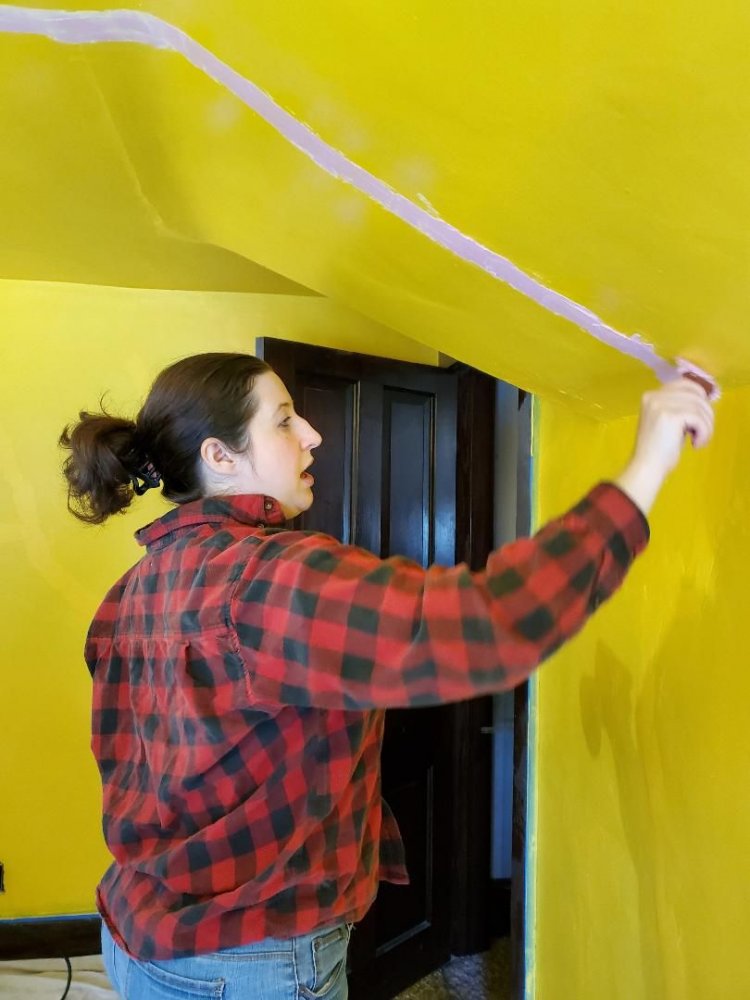Here is the office, as of today. Should coulda didn't use primer on old, 100yo plaster, so the old, greenish-grey paint was showing through.