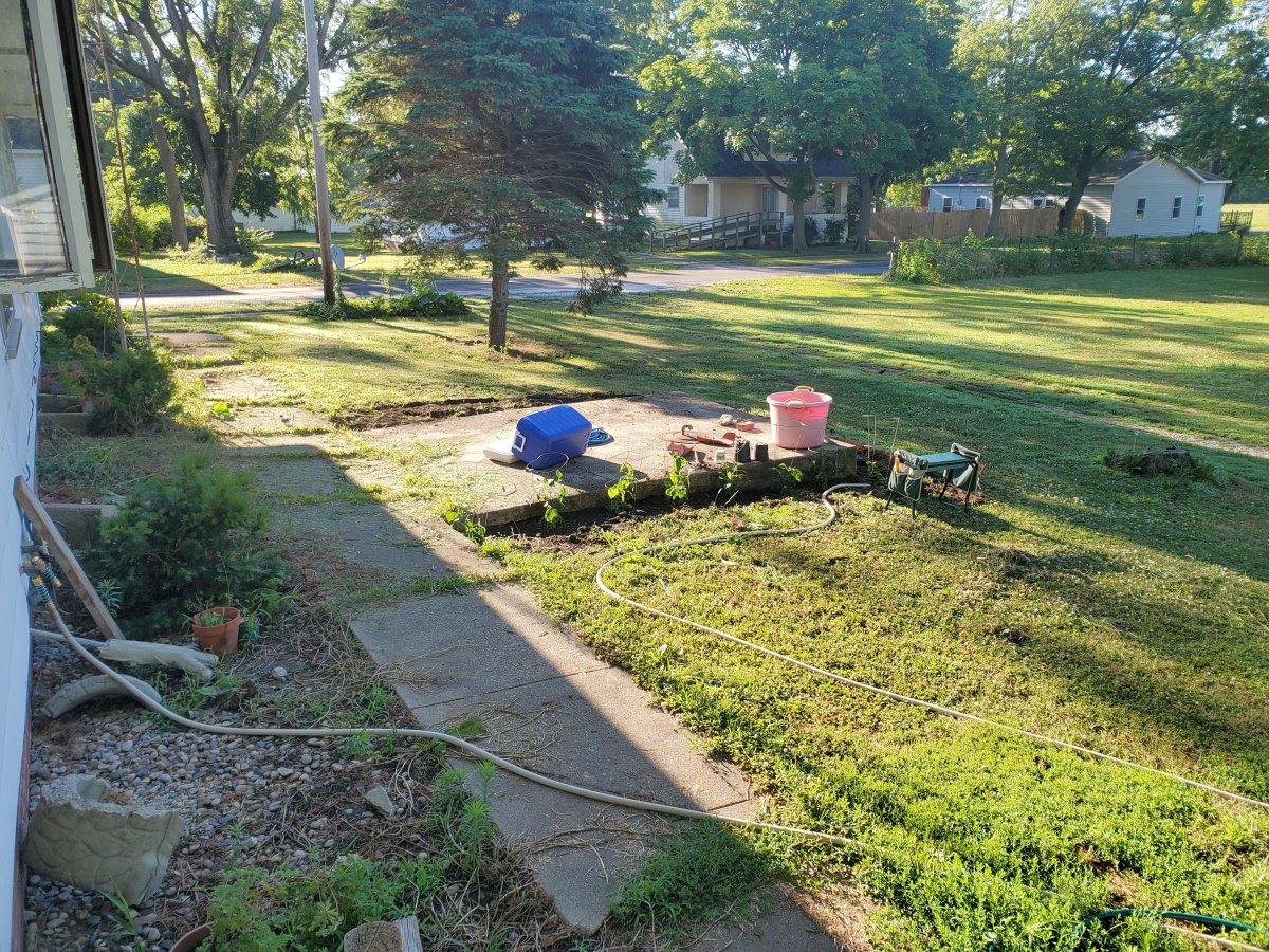 I was able to clear weeds, waterspouts (from a bush/tree I'm trying to kill) and trim my yews on the south side of the house yesterday. I dug out some of the weeds, pulled some and tilled around the cistern yesterday and got 8/17 of my sweet peppers in the ground. Since I mow close I caged them, too and watered heavily this morning. I even loaded up the yard trash and moved it to my new weed pile. :D